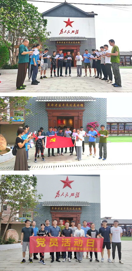 在体育教学部直属党支部书记甘阳同志的带领下,本部门党员一起参观了革命老区平浪村展示馆,认真聆听了革命历史讲解、参观了展示馆内陈列的照片、文献、实物等史实材料等。并在党支部书记甘阳同志的带领下,现场党员们一起重温入党誓词。