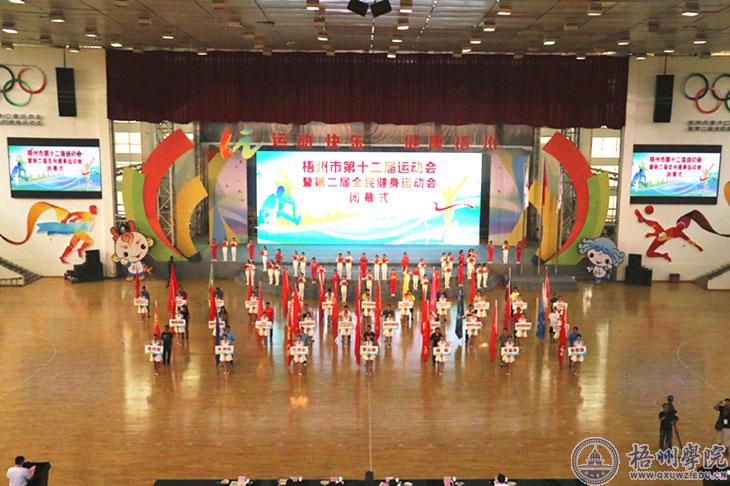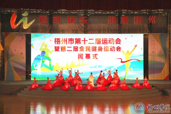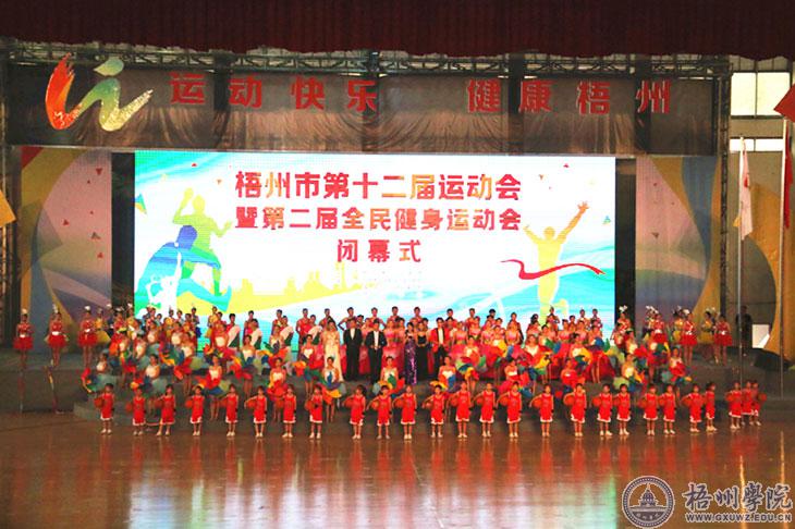 9月28日上午,梧州市第十二届运动会暨第二届全民健身运动会在我校体育馆三楼主会场落下了帷幕。市第十二届运动会主委会主任、市委常委、宣传部部长、副市长黄振饶,梧州学院副院长邱房贵出席了闭幕式。