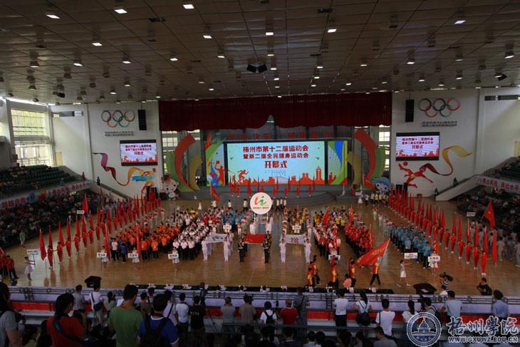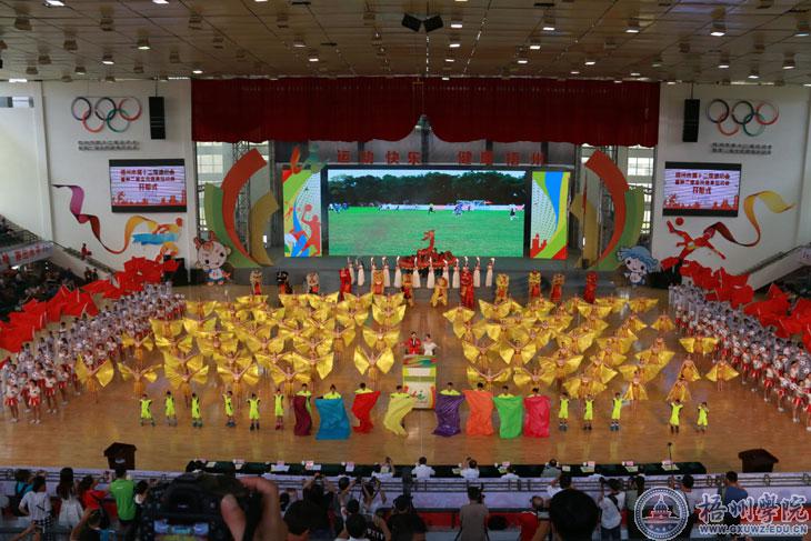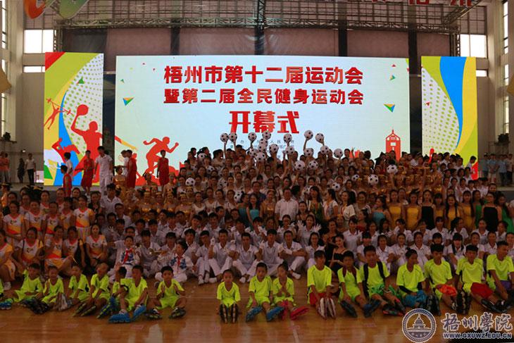 9月19日上午,梧州市第十二届运动会暨第二届全民健身运动会开幕式在我校体育馆三楼主会场举行开幕式。梧州市委书记、市人大常委会主任黄俊华出席开幕式并宣布开幕,梧州市市长朱学庆致开幕词,梧州市委常委、宣传部部长、副市长黄振饶主持开幕式。自治区体育局副局长卢意文,梧州市四家班子领导,我校校长杨奔以及各机关事业单位、社会各团体代表观看了开幕式表演。