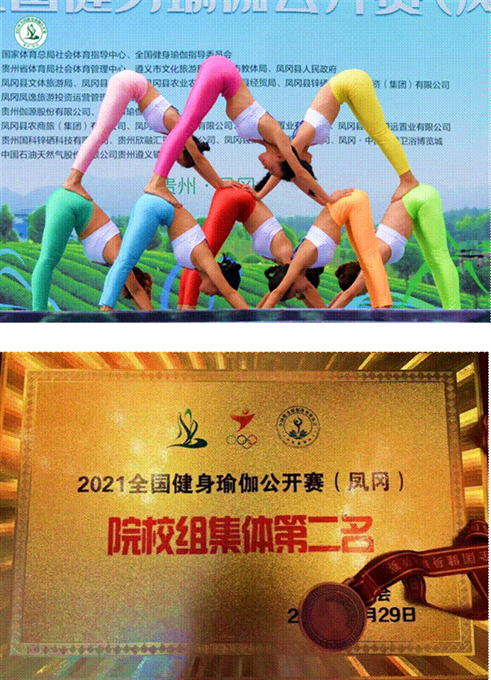 9月28日-30日,由国家体育总局社会体育指导中心、全国健身瑜伽指导委员会主办的2021年全国健身瑜伽公开赛(凤冈站),在贵州遵义市凤冈的茶海之心、中国禅茶瑜伽小镇举行。我校杨薇、陈丽冰、覃礼荣三位老师带领健身瑜伽代表队参加了本次比赛,并取得优异成绩:集体组荣获第二名、第四名、第六名;女双组荣获第三名、第四名、第八名;女单组荣获第六名、第七名。