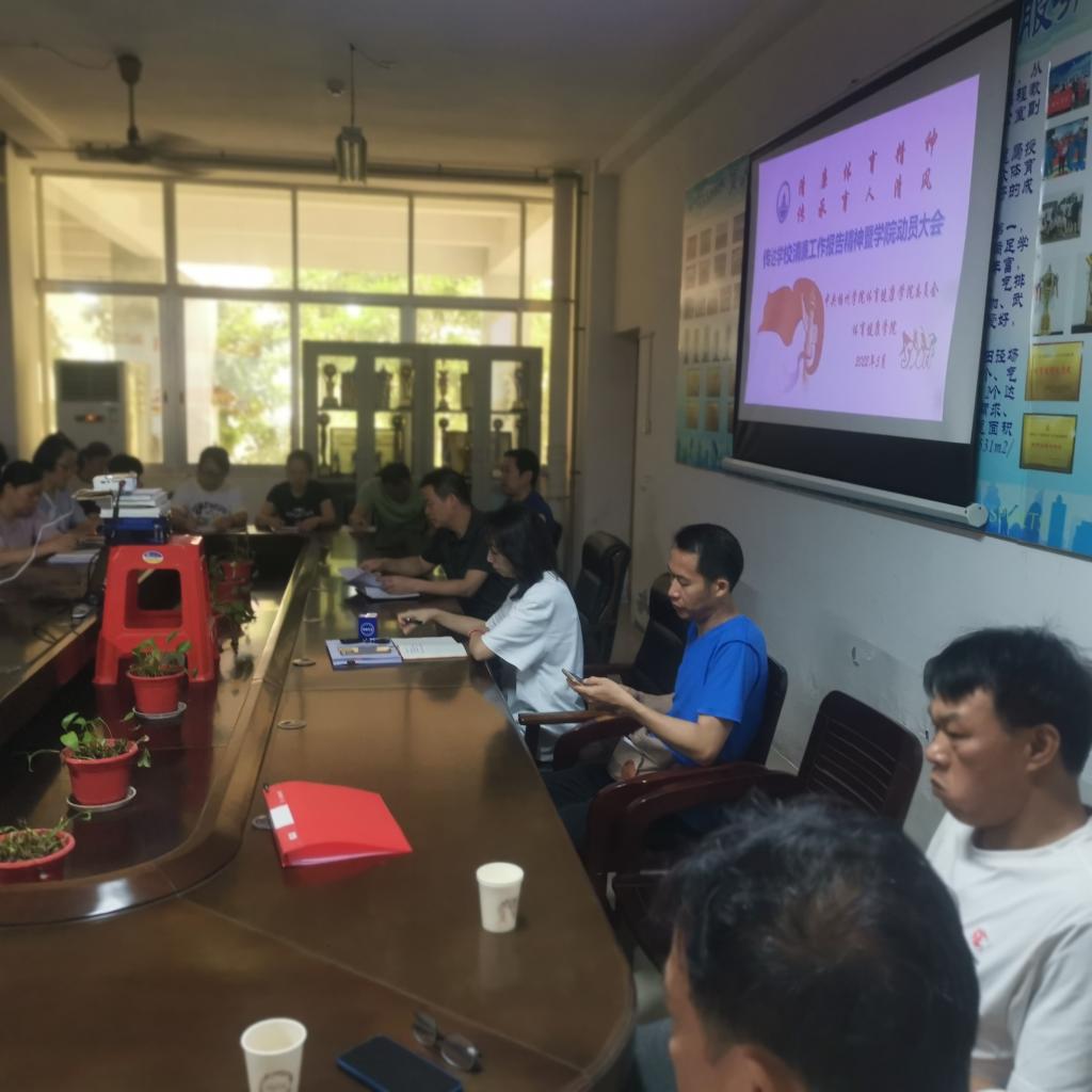 2022年5月30日,我院在体育健康学院办公室,召开清廉学校建设工作专题会,全体教职员工参加会议。
