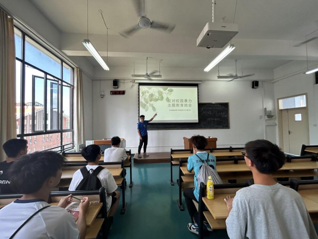 10月21日,为了增强同学的自我保护意识并降低受害风险,体育教育2024级1班召开以“反对校园暴力”为主题的团课。此次团课由班级团支书黄立强主讲,2024级全体团员参与。