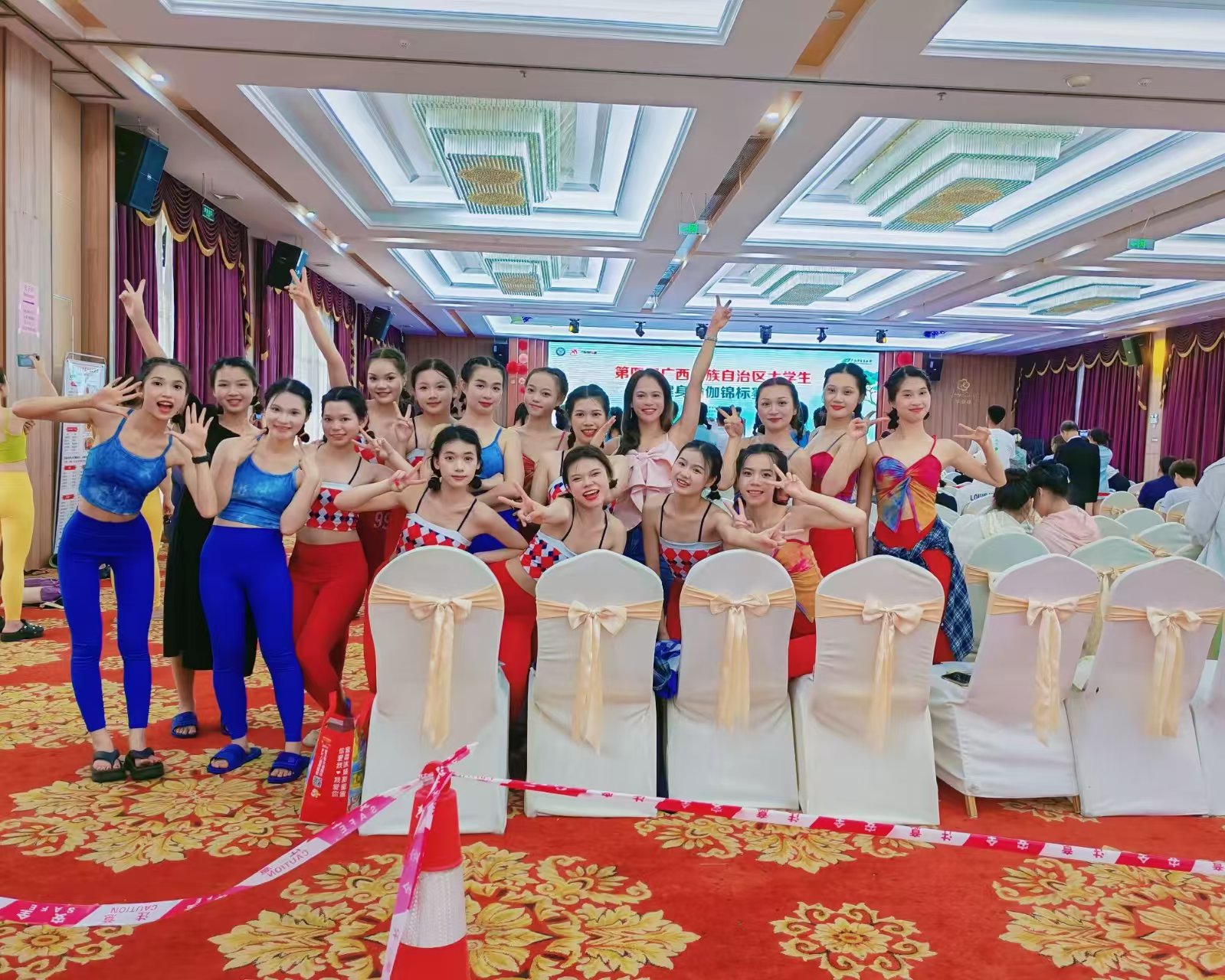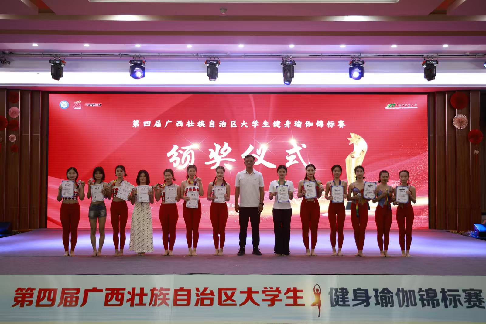 6月8日,第四届广西壮族自治区大学生健身瑜伽锦标赛在防城港圆满收官,我校20名参赛运动员在陈丽冰老师指导下凭借出色表现斩获多项佳绩:获大众团体赛高级本科院校组一等奖、大众团体赛初级本科院校组二等奖;获精英赛集体本科院校组二等奖 2 项、三等奖 1 项。