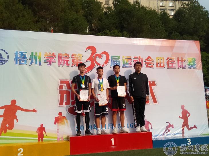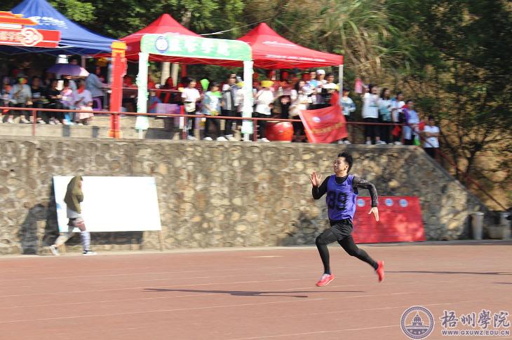 “哇,他好快啊!”“商学院加油!”……商学院2017级金融工程1班的张学明在跑道上遥遥领先,距离终点还有30米、20米、10米……终点越来越近了,只见他咬紧牙关,双臂快速摆动,完成了最后的冲刺,一举夺得冠军。